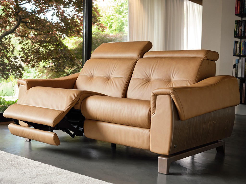 Die Anna-Serie bietet eine Vielzahl an Optionen, von Bezugsmaterialien in hochwertigem Leder oder Stoff, über Farben und Armlehnenvarianten bis hin zu verschiedenen Fußdesigns und -farben. Die modularen Elemente lassen sich nach Belieben kombinieren – auch motorisierte und manuelle Sitze in einem Sofa.