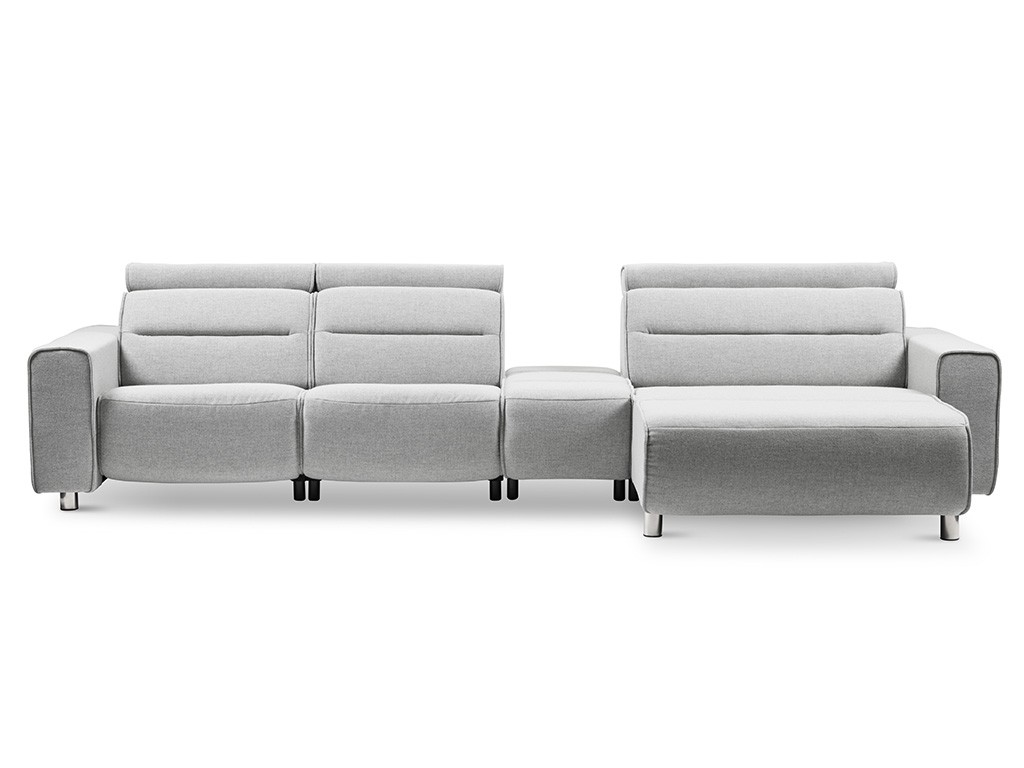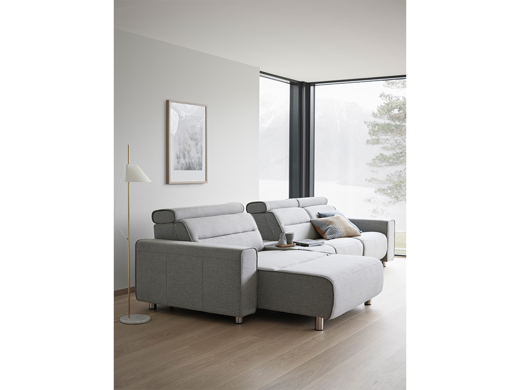 Das Stressless® Emily Sofa überzeugt durch schlanke Linien und einen modernen Look, der Eleganz und Komfort perfekt vereint. Die großzügigen, weichen Kissen laden zum Entspannen ein, während die verstellbaren Kopfstützen für jede Sitzposition optimalen Halt bieten. Du kannst zwischen fester Rückenlehne oder motorisierten Modulen wählen, bei denen sich Rückenlehne und Fußstütze individuell an deine Bedürfnisse anpassen lassen.