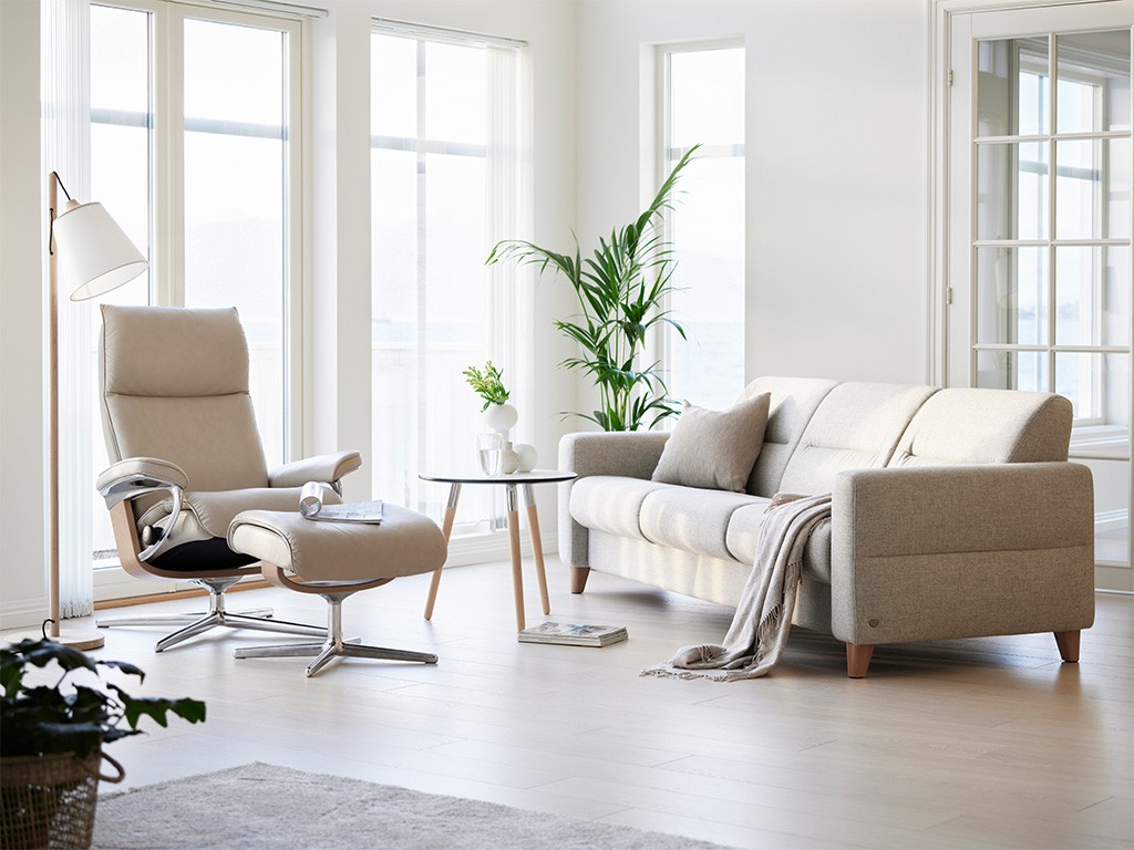 Das Stressless® Fiona Sofa ist ein Design-Highlight, das Funktionalität und Ästhetik perfekt vereint. Die harmonische Kombination aus klaren Linien, eleganten Proportionen und feinen Details macht Fiona zu einem stilvollen Mittelpunkt in jedem Wohnzimmer. Mit den Varianten Holz und Stahl hast du zusätzlich die Möglichkeit, deinem Einrichtungsstil eine besondere Note zu verleihen – sei es modern, klassisch oder urban.