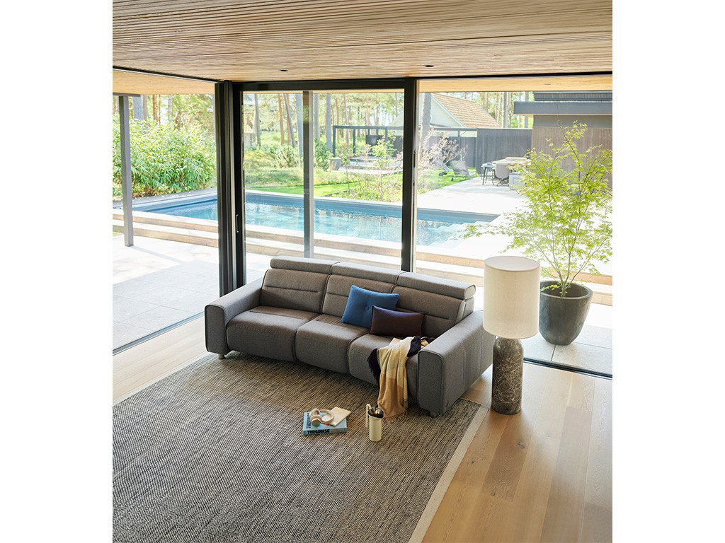 Erlebe mit dem Stressless® Emily Sofa modernen Komfort, der sich an deine Bedürfnisse anpasst. Das elegante Design mit schlanken Linien, weichen Polstern und optional motorisierten Funktionen schafft eine perfekte Symbiose aus Stil und Funktionalität. Jede Sitzposition lässt sich durch die verstellbare Kopfstütze und die individuell einstellbare Rücken- und Fußstütze personalisieren.