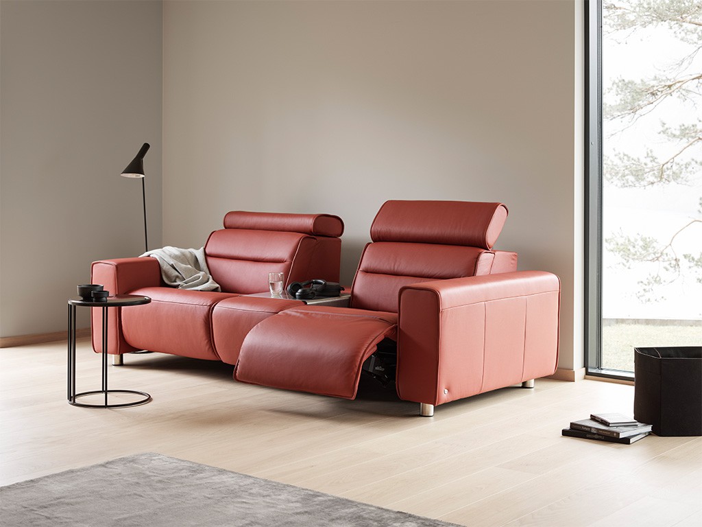 Das Stressless® Emily Sofa überzeugt durch schlanke Linien und einen modernen Look, der Eleganz und Komfort perfekt vereint. Die großzügigen, weichen Kissen laden zum Entspannen ein, während die verstellbaren Kopfstützen für jede Sitzposition optimalen Halt bieten. Du kannst zwischen fester Rückenlehne oder motorisierten Modulen wählen, bei denen sich Rückenlehne und Fußstütze individuell an deine Bedürfnisse anpassen lassen.