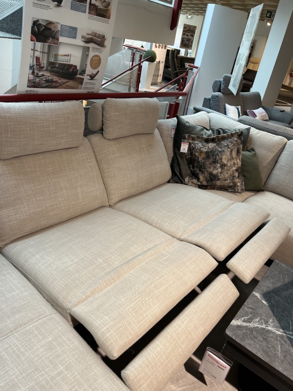 In Stoff City 84 Clay, Metallkufe schwarz, Armlehne A, alle Teile Rücken echt, Sitzhöhe ca. 45 cm, Rückenhöhe ca. 85 cm, Schenkelmass ca. 349 x 226 cm, Longchair 170cm tief